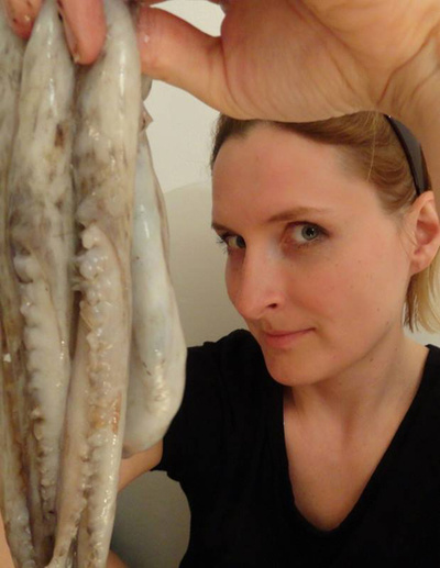 — Моя серия TORSO — переосмысление классических форм искусства в новой технике, или, если проще, натюрморты из осьминогов. Прототипом фигур служат классические торсы из известных музеев мира. Я беру картинку, достаю из холодильника осьминогов и создаю из них композицию.