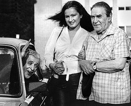 | С Роланом Быковым и Софией Ротару во время съемок художественного фильма «Душа», на которые Леонид Осипович заглянул случайно |