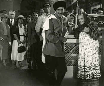 | Пастух Мусаиб (Владимир Зельдин) и свинарка Глаша (Марина Ладынина) в комедии Ивана Пырьева «Свинарка и пастух», 1941 год |