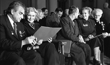 | Григорий Александров, Любовь Орлова, Сергей Лемешев, Марина Ладынина и другие в Колонном зале Дома союзов, Москва, начало 50-х |