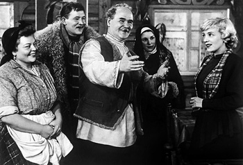 | Елена Савицкая, Борис Андреев, Сергей Калинин, Вера Васильева и Марина Ладынина в «Сказании о земле Сибирской», 1947 год |