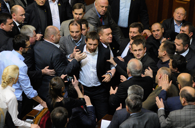 А еще в этой Раде дерутся, сплетничают, оскорбляют друг друга. Такое бывало и в предыдущих созывах, но только в нынешнем могло произойти нечто столь инфернально-комическое, как балетная сценка Барна-Яценюк. Что это — невроз, присущий жизни в военное время? Выплеск неуверенности в ближайшем будущем — своем и страны?