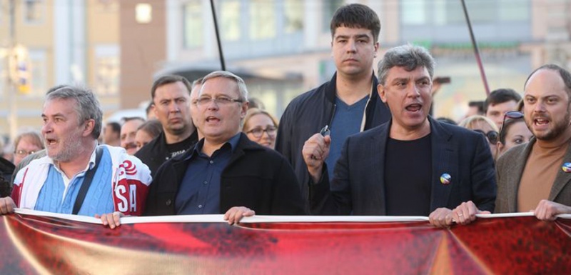 В России сейчас народ действительно напуган, уголовная ответственность практически за все. Одиночным пикетом сейчас могут признать даже наличие одинаковых футболок на трех людях. Просто встаньте впятером или вшестером у московского метро в одинаковых футболках, даже если это будет зеленая футболка с желтым треугольником, возьмитесь за руки, и через пять минут вас заберут.