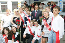 ![]() Михаил Добкин с выпускниками одной из харьковских школ |