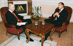![]() Михаил Добкин — Дмитрию Гордону: «Главное, что после нас останется детям и внукам, смогут ли они испытывать уважение к своему отцу, деду...» Фото Александра ЛАЗАРЕНКО |