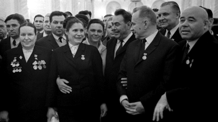 | Генеральный секретарь ЦК КПСС Леонид Брежнев, председатель Совета Министров СССР Алексей Косыгин, председатель Совета Министров УССР Владимир Щербицкий, первый секретарь ЦК Компартии УССР Петр Шелест и другие, 1969 год. «Шелест понимал, что убить Политбюро террористам-одиночкам не под силу, но опасался, что оно взорвет себя изнутри» |