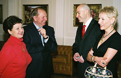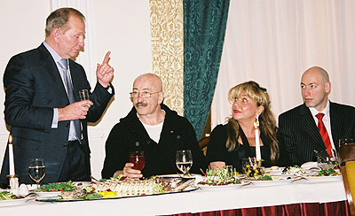![]() На концерте Александр Розенбаум посвятил Леониду Кучме песню. На банкете экс-Президент Украины произнес в честь Розенбаума речь. (Слева от Александра Яковлевича его бессменный продюсер Белла Купсина) |