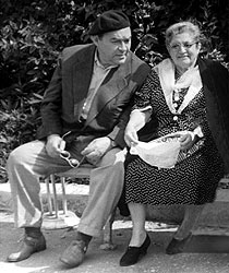 ![]() Леонид Осипович со своей первой супругой Еленой Осиповной в Доме творчества, г. Старая Руза |