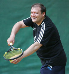 ![]() В редкие минуты досуга Михаил Маркович берет в руки теннисную ракетку |