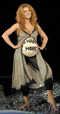 А вот по мнению дизайнерского дуэта LUVI, в кризис надо рожать детей, да побольше! Поэтому их коллекция была посвящена будущим мамам. Пропагандировали эту идею с подиума Анна Седокова, Светлана Лобода, Лилия Подкопаева, супруга режиссера Алана Бадоева Жанна. Животики у моделей имитировали красивые розовые подушечки, расшитые пайетками.