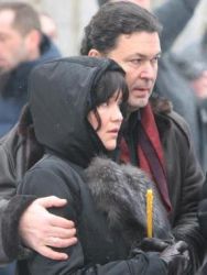| Первый супруг Анны Александр Самохин с дочерью Сашей на похоронах |