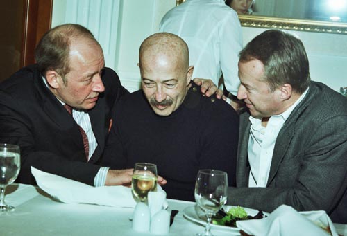 ![]() Сначала уже "хороший" Аллан Чумак проверил, настоящие ли у Розенбаума усы, а потом по-отечески погладил Гордона по лысине |