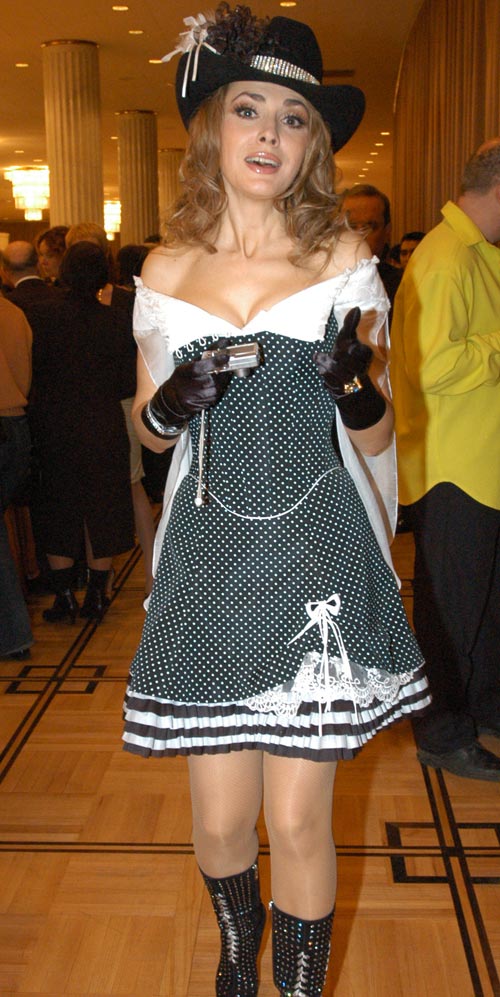 Когда за кулисами появилась Татьяна Недельская, все обратили внимание на ее стильный наряд. Шубка из стриженой норки с воротником из рыси и аппликациями в виде слонов, золотые сапожки на высоком каблуке и колготки с леопардовым рисунком... На вопрос журналистов, у какого дизайнера она одевается, Татьяна игриво ответила: "У меня только один дизайнер, самый лучший и талантливый - мой муж. У него к одежде такой подход: "Нравится? Покупай!".