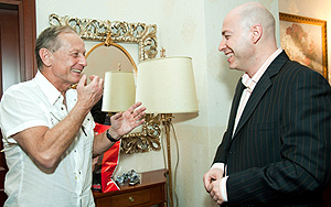 | «Я не раз говорил: не было бы Жванецкого, Окуджавы, Высоцкого, Евтушенко, Вознесенского, многих других, так быстро советская власть не закончилась бы». С Евгением Евтушенко в Риге, 2006 год |