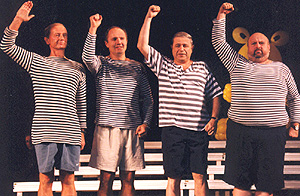 | Михаил Задорнов и Евгений Петросян в программе «Аншлаг! Аншлаг!», 1998 год |