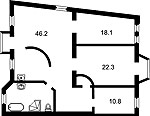 1 комн. 12/18, 46,5/20,2/11,8 кв. м, жилое состояние, лоджия, телефон, чистое парадное с кодом, дом 2000 г., парковка, тихое место, озера, парк