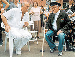 | С Михаилом Ульяновым на съемках «Ворошиловского стрелка», 1999 год |