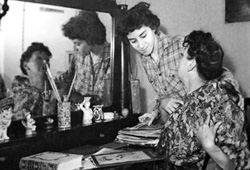 | «Весна», 1947 год. «Я сама написала роль гримерши, которая говорит Любови Орловой, то есть ее героине: «Такие губы теперь не носят!» |