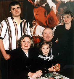 - Ем два раза в день. Рано утром завтракаю овсянкой на воде и сарделькой, пью кофе с молоком, а потом целый день даже воды не пью. Ужинаю тем, что приготовит жена, вот и вся диета. В нашей семье все привыкли есть мало, потому что танцуют. Жена и дочь - народные артистки Украины, зять - заслуженный. Сын, хоть и не танцор, тоже здорового образа жизни придерживается и спиртного не употребляет вообще. Мол, зачем от семьи отбиваться...