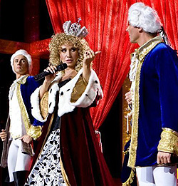 Преобладающим цветом изысканных платьев певицы оказался черный. Правда, его жесть существенно смягчали декольте, обилие блестяшек, кружев и полупрозрачных юбок, под которыми недвусмысленно угадывались стройные формы. «Картина маслом», - как говорил один киноперсонаж.