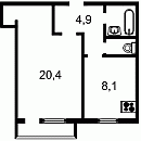1 комн., 4/9, 38/20,4/8 кв. м., хорошая планировка, с/у разд., балкон, телефон, кодовый замок, два лифта, без ремонта, можно под гостиничный бизнес