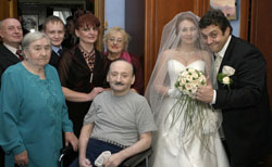 ![]() Свадьба сына Семена Фарады. Михаил Полицеймако тоже актер и, несмотря на то что взял фамилию матери, Семен Львович считает его самым близким человеком |