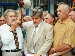 ![]() «Мое нынешнее мировоззрение сформировалось в годы перестройки, когда был взят курс на гласность». Левко Лукьяненко, Павло Мовчан и Виталий Карпенко на одном из митингов |