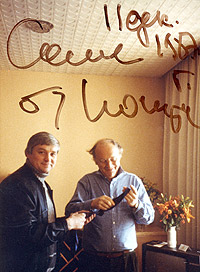 - Нет, упомянутый галстук лежал у него в нагрудном кармане смокинга, когда эту премию он получал. Иосиф был так взволнован и тронут... Над вашей головой (показывает) висит фотография, подписанная 11 декабря 87-го года, а передал я ему подарок 9 декабря, за день до вручения.