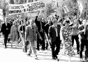 | Демонстрация избирателей в Харькове, 1989 год. «Харьков возмущался. Руководящие харьковские партчиновники проваливались на выдвижении один за другим» |