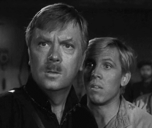 | В роли комиссара Белопольского с Валерием Золотухиным (Петя Трофимов), «Пакет», 1965 год |