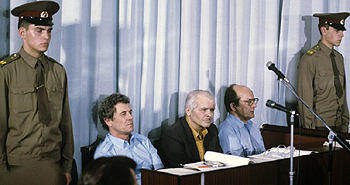 | Подсудимые по делу об аварии на Чернобыльской атомной электростанции: директор ЧАЭС Виктор Брюханов, заместитель главного инженера Анатолий Дятлов, главный инженер Николай Фомин во время судебного процесса, июль 1987 года Фото «РИА Новости» |