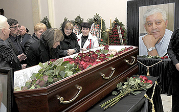 | Прощание с Михаилом Ворониным в киевском Доме учителя 18 апреля 2012 года. Михаила Львовича похоронили на Байковом кладбище |