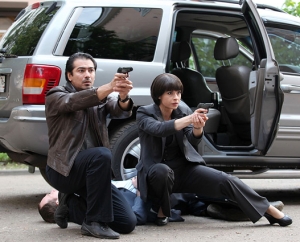 | В роли Эльдара Исаева с Ириной Лачиной в картине «Охраняемые лица», 2011 год |