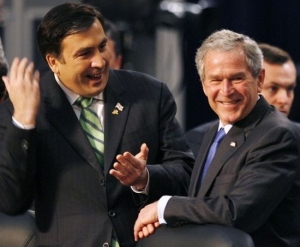 | С президентом США Джорджем Бушем-младшим. «То, что государственность мы спасли, — это, конечно, Буша большая заслуга... В конце концов США компромисс нашли — что-то среднее между военной операцией и гуманитарной, однако этого было достаточно, чтобы Путина остановить» |