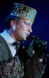 За трехчасовой концерт Пенкин восемь раз сменил наряды, каждый из которых был оригинальнее предыдущего. Вначале звезда предстала в нелепо огромной тигровой кепи а-ля Олег Попов и длинном черном плаще, посреди выступления — в классического покроя костюмах, с ног до головы (если учесть туфли и шапочки) обшитых драгоценными камнями, а под занавес — в ярко-рубиновом атласном балахоне, жутко смахивающем на дорогую, но неудачную пижаму от кутюр. Причем из последнего ряда балкона можно было в подробностях разглядеть огромный медальон на груди Пенкина — переливающуюся вещицу с изображением знака доллара, купленную артистом несколько лет назад на гастролях в США.
