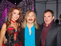 ![]() С композитором Игорем Николаевым и шоуменом, артистом, гонщиком Николаем Фоменко |