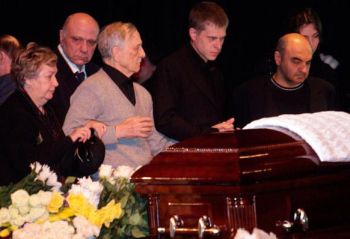 | Второй муж певицы бывший журналист-международник Юрий Папоров (второй слева) и их общий сын Николай (рядом) у гроба Валентины Толкуновой. От 87-летнего Папорова поначалу скрывали смерть супруги, так как он тяжело болен. С сыном отношения у Валентины Васильевны начали налаживаться лишь в последние месяцы ее жизни |