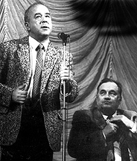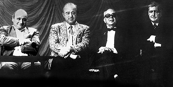 | Члены жюри — Михаил Жванецкий, Виталий Коротич, Никита Богословский и Илья Глазунов — на открытии Первого международного кинофестиваля «Золотой Дюк» в Одесском театре оперы и балета, 10 сентября 1988 года |