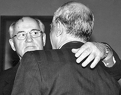В моем архиве есть интересная фотография, которую я до сих пор не давал в печать. На этом фото Михаил Сергеевич Горбачев жарко обнимает меня. Но фотограф снял нас с моей спины, так что поверх моего плеча и горбачевских ладоней, участвующих в объятии, виднеется его лицо - напряженное, с прикушенной губой. Михаил Сергеевич со временем окончательно терял легкость в общении, становясь личностью трагической. Окружающий мир казался ему все более враждебным, никто в этом мире не заслуживал доверия полностью. Одинокий игрок, он сам себя загонял в угол.
