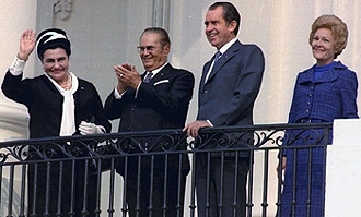 | Броз Тито с третьей женой Йованкой, которая была моложе мужа на 32 года, и 37-й президент США Ричард Никсон с супругой Тельмой |