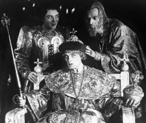 | В роли князя Старицкого с Михаилом Кузнецовым (опричник Федор Басманов) и Николаем Черкасовым (Иван Грозный) в последней картине Сергея Эйзенштейна «Иван Грозный», 1944 год |