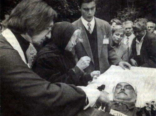 | Прощание с Булатом Окуджавой на Ваганьковском кладбище Москвы (скончался в Париже в военном госпитале), июнь 1997 года |