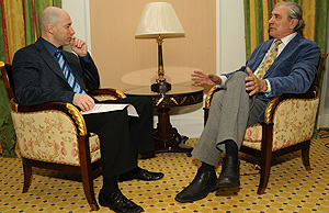 | Александр Лазарев — Дмитрию Гордону: «Порою задумываешься, какой ценой пытаешься чего-то добиться, и ответ бывает очень жестоким, жестким» Фото Феликса РОЗЕНШТЕЙНА |