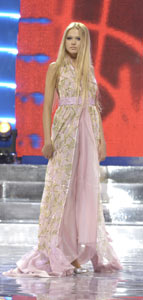 Любопытнее всего было наблюдать за реакцией охранников дворца "Украина" и аккредитованных фотокорреспондентов. Мужчины в буквальном смысле остолбенели, когда 26 участниц финала, не стесняясь, стали переодеваться прямо за кулисами. 26 блондинок, брюнеток и шатенок. Высоких и не очень (рост - от 171 до 179 см), стройных и очень стройных, молодых и совсем молоденьких (возраст - от 15-ти до 22-х).
