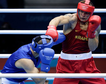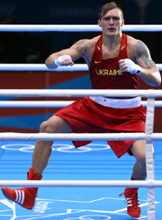 | Полуфинальный боксерский поединок в весовой категории до 91 кг между Александром Усиком и болгарином Тервелом Пулевым на Олимпийских играх в Великобритании 10 августа 2012 года |