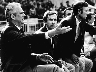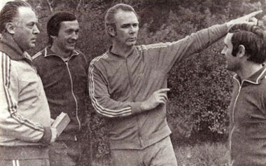 | Тренерский штаб киевского «Динамо»: Михаил Коман, Михаил Фоменко, Валерий Лобановский и Анатолий Пузач, 1980 год |