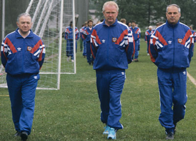 | Руководители сборной СССР: Никита Симонян, Валерий Лобановский и Юрий Морозов, 1990 год Фото «РИА Новости» |