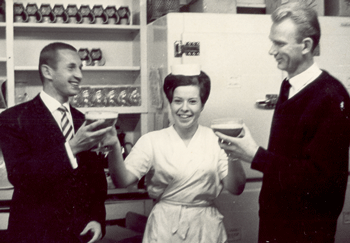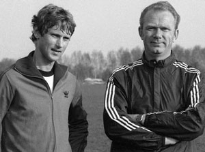| Олег Базилевич и Валерий Лобановский после игры в Западном Берлине, середина 60-х |
