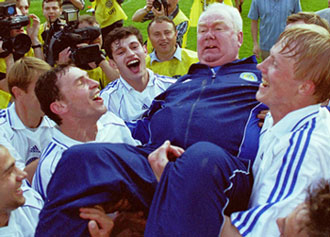 | Динамовцы качают Валерия Васильевича после победы в финале Кубка Украины, 2000 год Фото УНИАН |