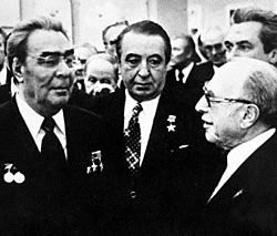 ![]() Встречи с вождями не были для Бориса Ефимовича редкостью. С дорогим Леонидом Ильичом Брежневым |